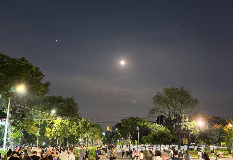 毎年、花火や、ウォーターショーなどの派手な演出が行われますが、今年はシリキット王太后陛下の喪中ということで、抑えめな感じでした。