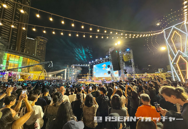 ベンジャシリ公園は、多くの日本人が居住するエリアであるため、日本人の家族連れなどがたくさん訪れる会場です。BTSプロンポン駅の6番出口を降りるとすぐに公演の入口があります。交通のアクセスが良く、毎年たいへん混雑します。ベンジャシリ公園のピークは19時過ぎたあたりです。