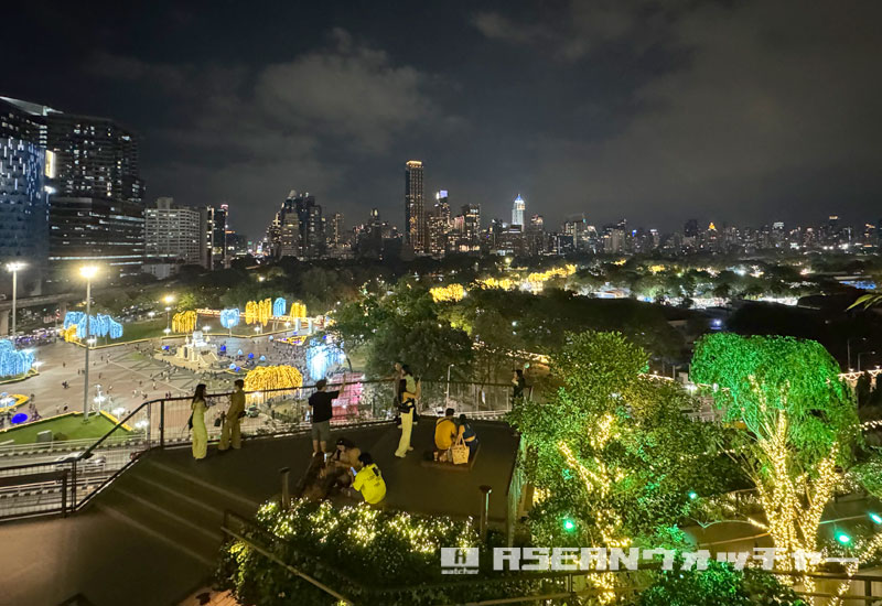 2025年、シーロムにできたショッピングモールで、ルンピニ公園とサトーンのビル群が一望できるルーフトップ公園は、夜景スポットの新名所となっています。